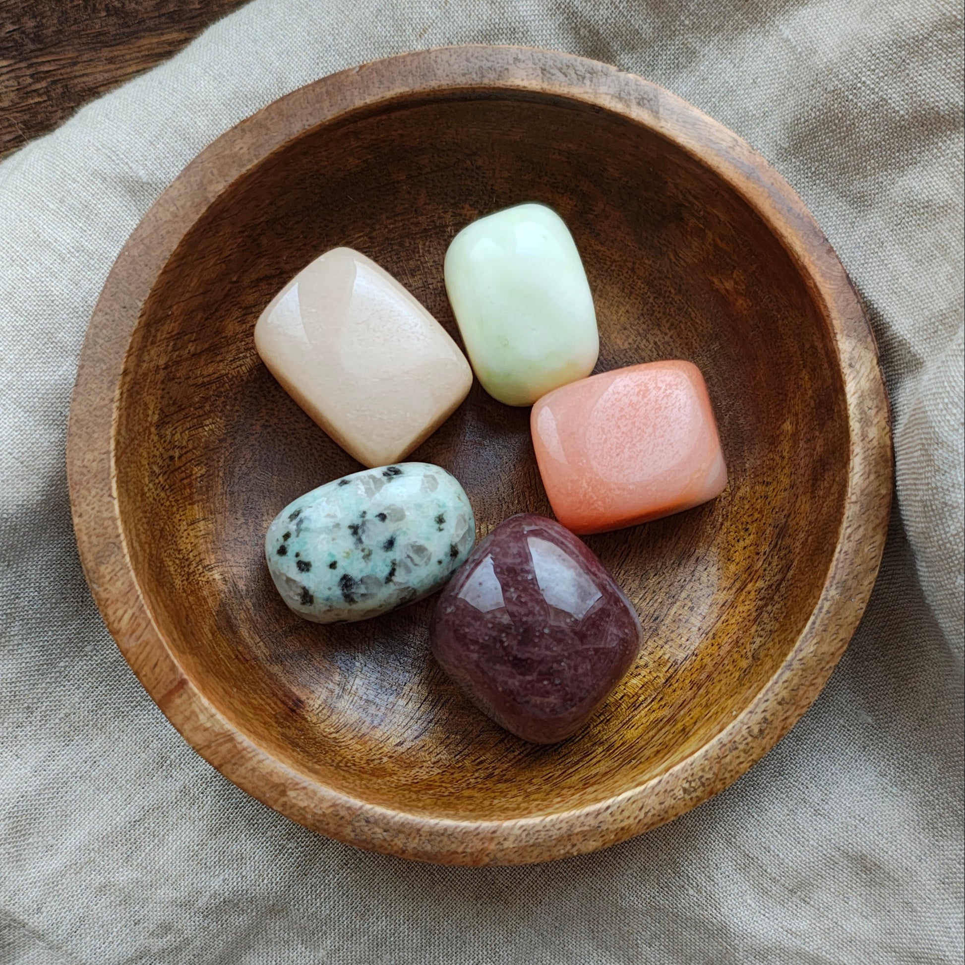 Purification: Plongez les 5 pierres dans un bol d'eau pendant une demi journée.